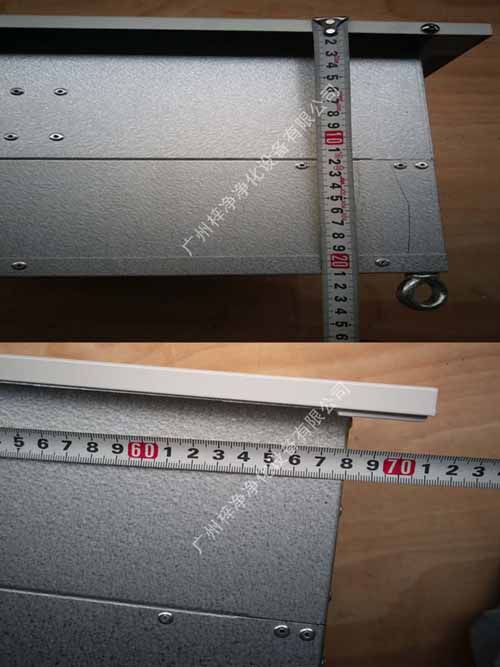 A、高效送風口靜壓箱體,材質有冷軋鋼板(A3板)與不銹鋼板。箱體是用作吊在天花上與四周庫板相結合密封,也是高效送風口四件套主體。