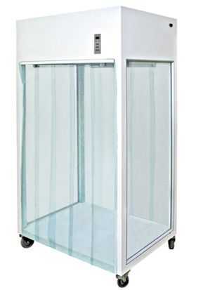 鋼板烤漆采樣車采用垂直層流的氣流形式。變速離心風機將負壓箱內經過預過濾器過濾后的空氣壓入靜壓箱,再經高效過濾器進行二次過濾,從高效過濾器出風面吹出的潔凈氣流,以一定的均勻的斷面風速通過工作區時,將塵埃顆粒和生物顆粒帶走,從而形成無塵無菌的工作環境。