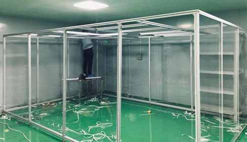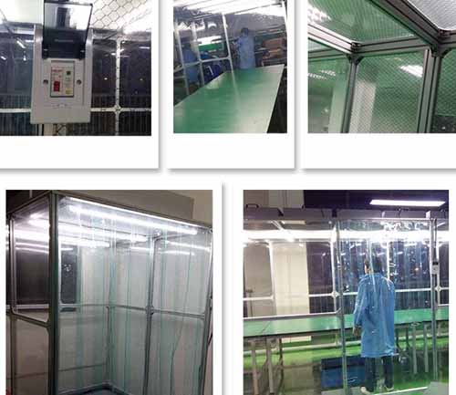 百級潔凈棚采用工業(yè)鋁材(或不銹鋼方通、鐵方通噴塑)作為框架,風(fēng)機(jī)濾網(wǎng)機(jī)組(FFU)送風(fēng),四周懸掛防靜電垂簾(或鋼化玻璃),其內(nèi)部凈化級別可達(dá)到100-10000級。適用于操作區(qū)內(nèi)局部凈化級別要求高的區(qū)域。