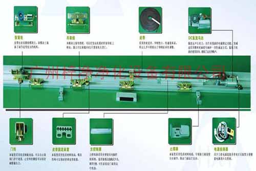 吊架組:本模塊上裝有門輪,可以再發動機箱的鋁制導軌上移動,大可以承載150公斤重量的大型門機構。
