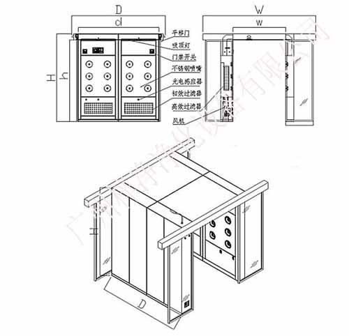 W1600*D1700*H2180mm;風淋區尺寸:W800*D1500*H1910mm