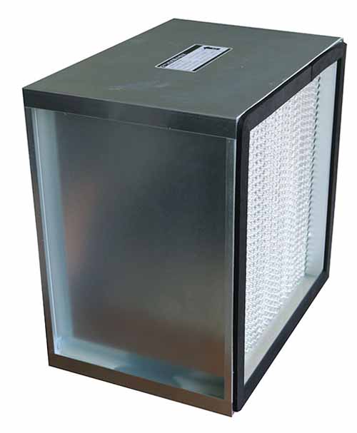 鋁隔板高效過濾器過濾效率≥99.9%~99.999%@≥0.5μm(鈉焰法)或歐洲標準H12-H14。鋁隔板高效過濾器外框為:夾層木板、鍍鋅板、鋁型材、不銹鋼板;